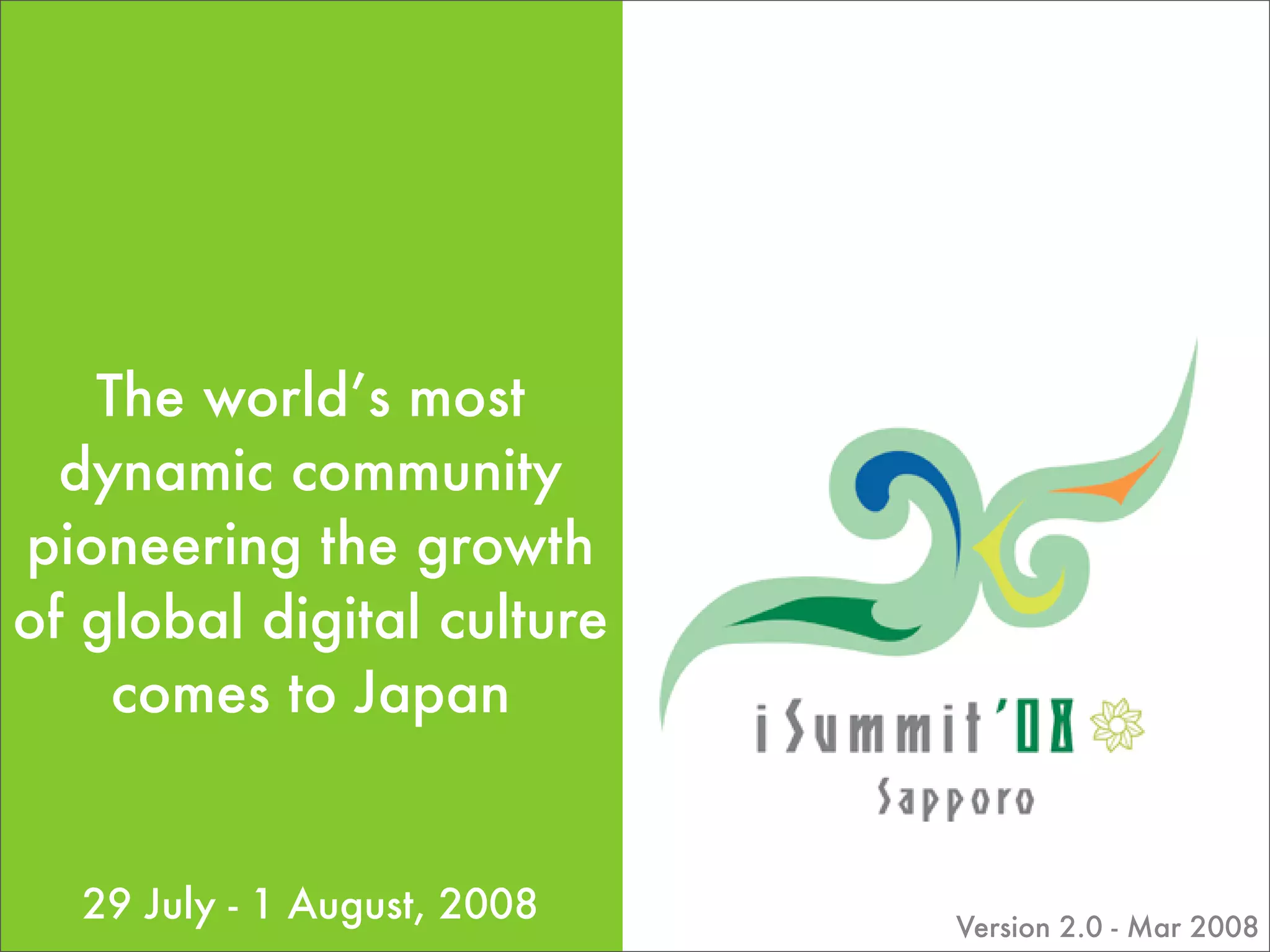 The document announces that the world's most dynamic community pioneering digital culture, known for bringing people together each year to discuss a free culture on the internet, will be coming to Japan from July 29th to August 1st, 2008. Artists, musicians, entrepreneurs, philosophers, lawyers, activists, technologists, educators and free-thinkers from around the world gather to share one ideal of a free digital culture where creativity is compensated and knowledge and creativity continue to be freely shared, allowing possibilities and creation without traditional controls that hamper new digital potential.