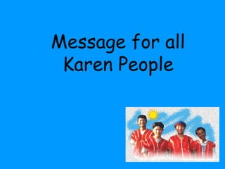 This document provides a menu for a website called Kwekalu.net, which contains news and information for the Karen people. The menu includes sections for the latest news from home, inside news and pictures, border news, and international news. Visitors to the site can click on the different news sections to view more information.