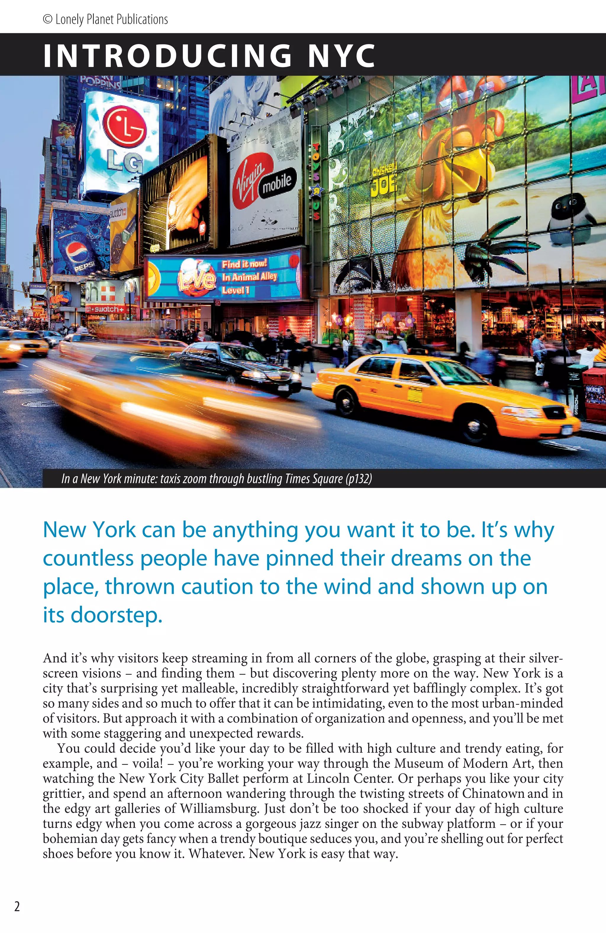 This document provides information about events and festivals in New York City throughout the year to help visitors plan their trip. Some highlights include the Lunar New Year Festival in Chinatown in February; the Mermaid Parade and Dyke March in Coney Island in June celebrating LGBTQ pride; free concerts by the New York Philharmonic in Central Park starting in early July; and the eccentric Howl! Festival and Fringe Festival in August showcasing experimental theater and performance art. The document recommends budgeting time and checking schedules, as events and business hours may be affected by holidays and seasons.