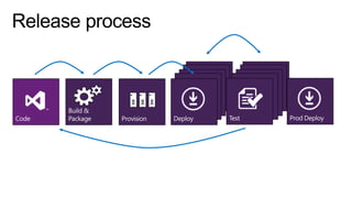 This document discusses trends in application lifecycles including more frequent releases, customer responsiveness, stakeholder transparency, and compliance with regulations. It also describes a continuous deployment solution for .NET teams that integrates tools like Visual Studio, System Center, and Release Management to enable continuous integration, testing, and deployment across development, testing, and production environments.
