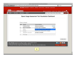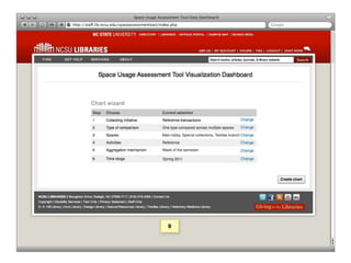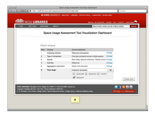The document introduces SUMA, an open-source tablet application designed to assist library staff in collecting and analyzing data on patron usage across various spaces and activities. SUMA seeks to streamline the assessment process, providing tools for data visualization and analysis while addressing current challenges like inconsistent data and manual counting methods. A private beta testing phase is set for Summer 2011, with an open beta to follow in late Fall 2011, alongside a project team that will oversee its development.