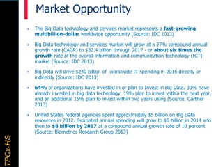 The document introduces TPCx-HS, the first industry-standard benchmark for big data systems, highlighting the rapid growth of the big data market, which is projected to reach $32.4 billion by 2017. It outlines the challenges enterprises face when selecting platforms and the necessity of standardized benchmarks to ensure reliability and comparability, drawing parallels to historical benchmarks established in the 1980s. TPCx-HS aims to measure the performance, price-performance, and energy efficiency of big data systems in a vendor-neutral manner, thus fostering healthy competition and technological evolution.
