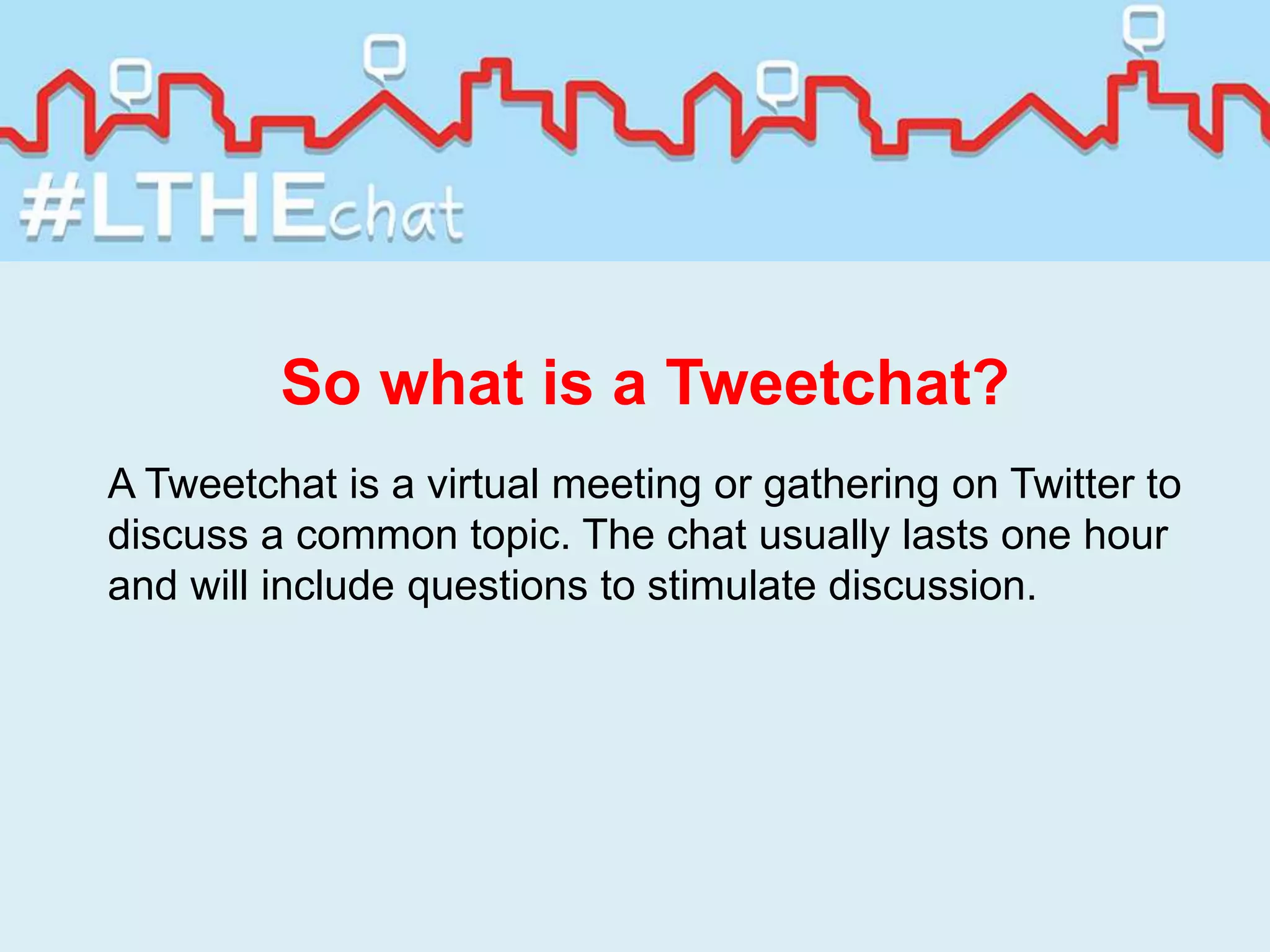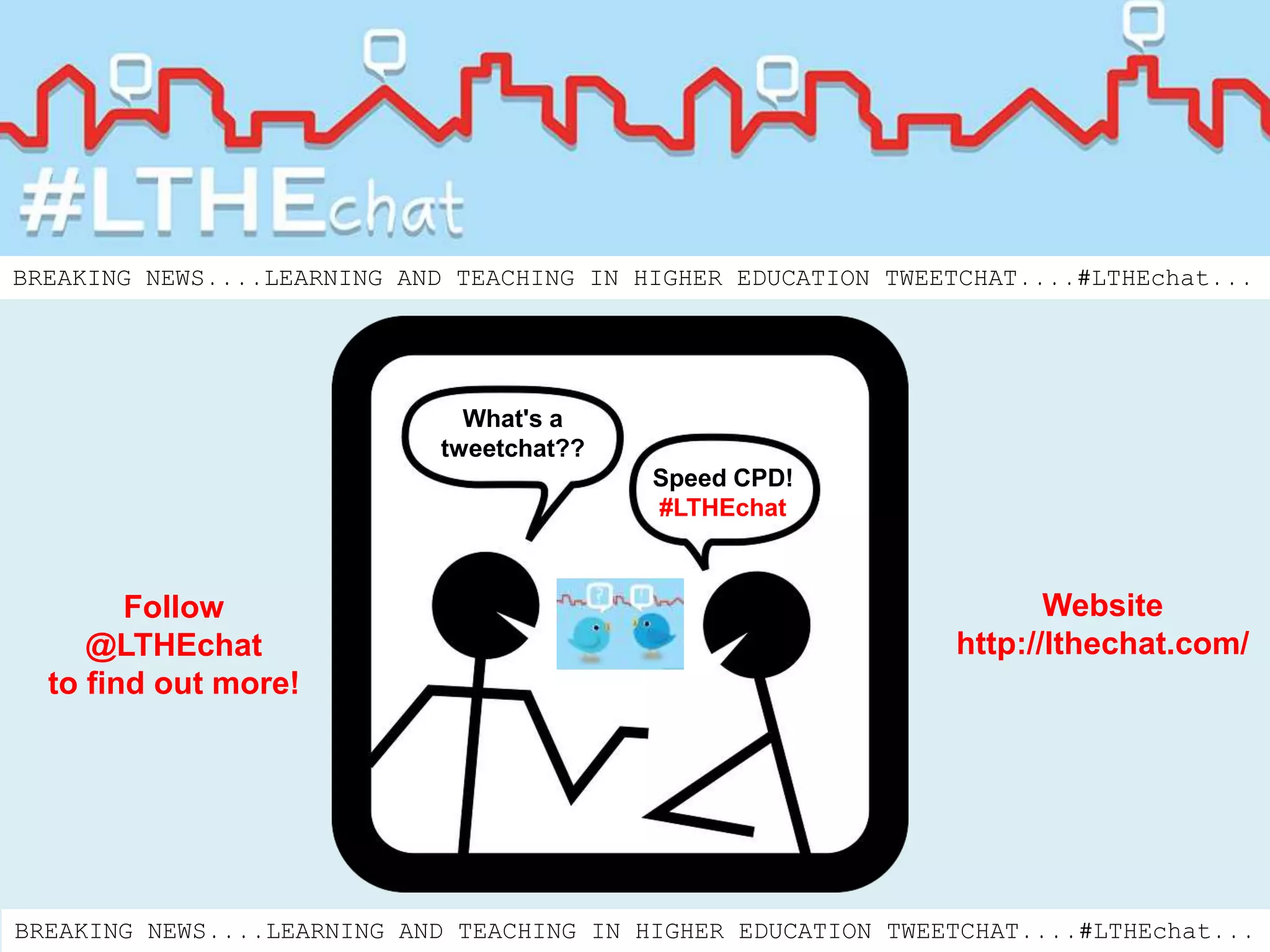 The document outlines the #lthechat, a weekly tweetchat focused on learning and teaching in higher education, which occurs every Wednesday from 8-9 PM GMT. Participants can engage by responding to prepared questions using the designated hashtag #lthechat, and they can also simply listen to the discussions. Various tools are suggested for participating and following the chat, such as Twitter, Tweetchat, and dashboards like Hootsuite and Tweetdeck.