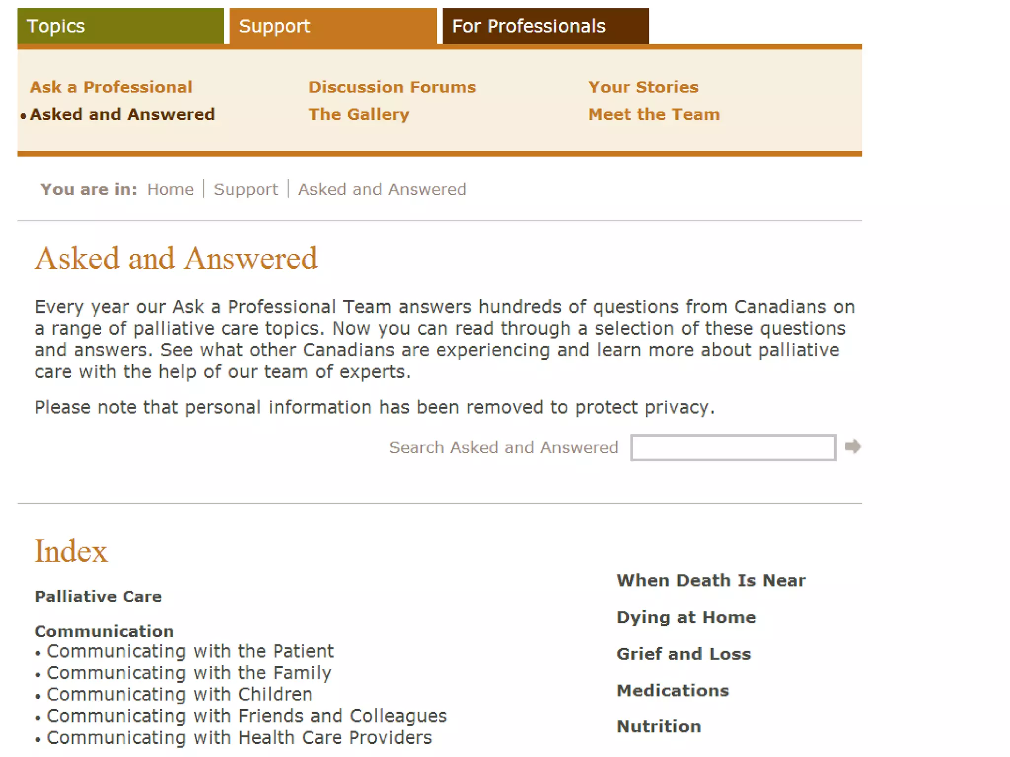 The Canadian Virtual Hospice provides evidence-informed health information and support for individuals facing end-of-life issues, helping caregivers and fostering community connections. With an annual budget of $600,000 and 3.5 staff members, it offers a variety of resources including over 600 listings of services, 800 third-party resources, and timely responses from palliative care specialists. The platform also emphasizes community engagement through forums, guidelines for interaction, and tips for fostering supportive discussions.