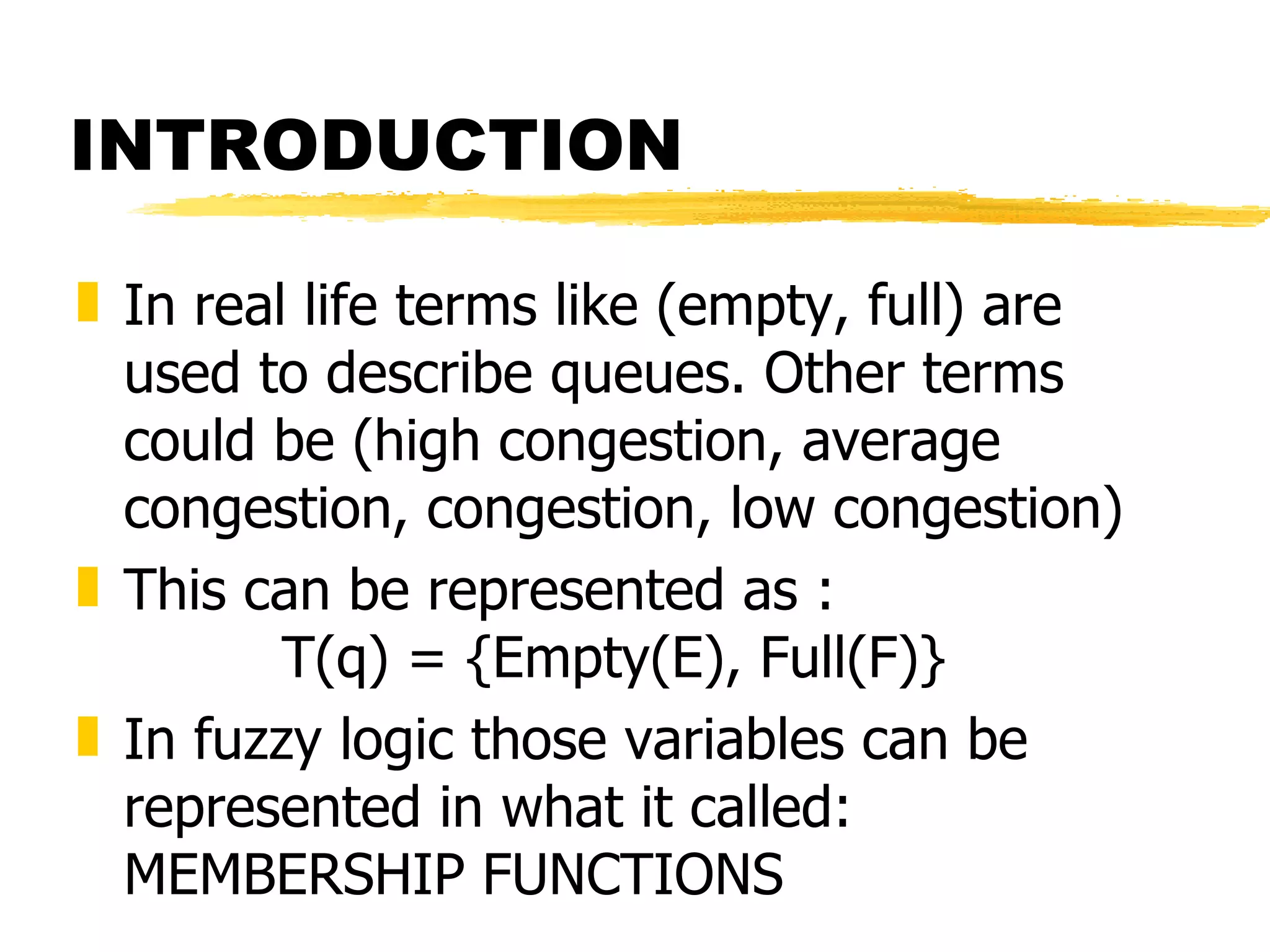 The document discusses fuzzy logic and its application to adaptive sampling. It introduces fuzzy logic concepts like membership functions and defines membership functions used for variables like deltaV and deltaT. It describes 25 rules for the fuzzy logic controller and methods for inferencing like MAX-MIN. The goal is to use a fuzzy logic approach to adaptively sample measurements based on changes in deltaV and deltaT.