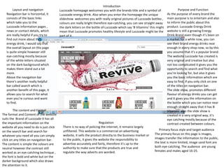 The Lucozade energy drink website welcomes visitors with bright pictures of bottles on its homepage. It provides basic information through a search bar and navigation links. Images are used to promote different drink flavors and convey health messages.