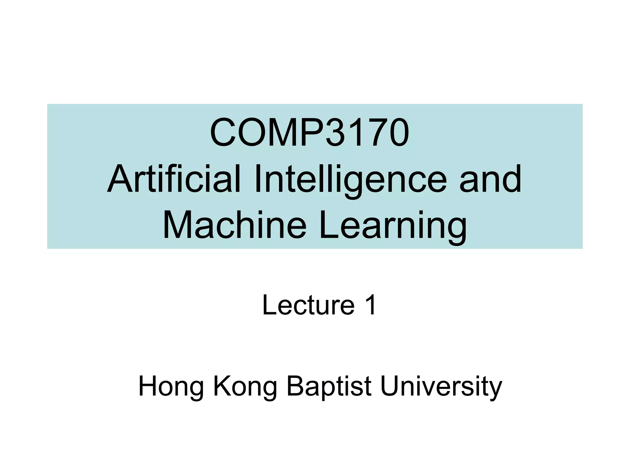 This document provides an overview of the COMP3170 Artificial Intelligence and Machine Learning course at Hong Kong Baptist University. It includes information about the course lecturers and textbook, assessment details, a tentative schedule of topics and dates, and a brief description of the content to be covered each week.