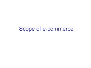 The document discusses e-commerce strategies. It defines e-commerce as technology-enabled transactions and technology-mediated exchanges between parties. It discusses different types of e-commerce like B2B, B2C, etc. It outlines the objectives of understanding what e-commerce is, the challenges of e-commerce, and strategies for e-commerce. It then discusses different strategies like positioning, leveraging resources, and using simple rules. It provides examples of how companies implement different strategic approaches and the goals of each approach.