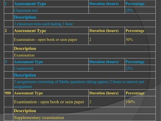 1) It describes the aims of the Mathematics 1 module which are to reinforce basic numeracy and algebraic manipulation through lectures, seminars and tutorials.