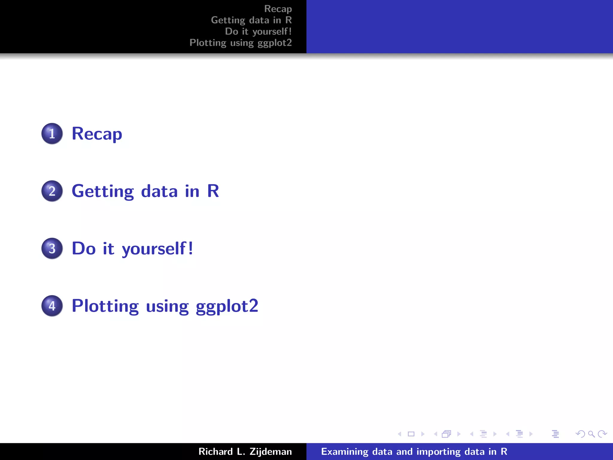 The document is a comprehensive guide on getting data into R, examining data structures, and utilizing the ggplot2 package for data visualization. It covers importing various data formats, summarizing data, and plotting techniques. Additionally, it provides examples of how to create and enhance plots, while encouraging users to explore and apply their analytical skills.