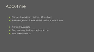 This document provides an introduction to Node.js. It discusses why JavaScript can be strange, but explains that JavaScript is relevant as the language of the web. It then discusses what Node.js is and its event-driven, non-blocking architecture. Popular Node.js applications like HTTP servers, REST APIs, and web sockets are mentioned. Examples are provided of building a simple web app with Express and Jade, a REST API with Restify, and using web sockets with Socket.io. The document also discusses using Mongoose with MongoDB for data modeling.