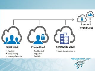 Cloud computing refers to storing and accessing data and programs over the Internet instead of a local computer's hard drive. It offers various online services through a network of remote servers. There are different types of cloud services and deployment models depending on who can access the cloud - public, private, hybrid or community. The main cloud service models are Infrastructure as a Service (IaaS), Platform as a Service (PaaS), and Software as a Service (SaaS). While cloud computing provides benefits like flexible access to data and lower costs, it also poses security and privacy risks if data is not properly protected on remote servers.