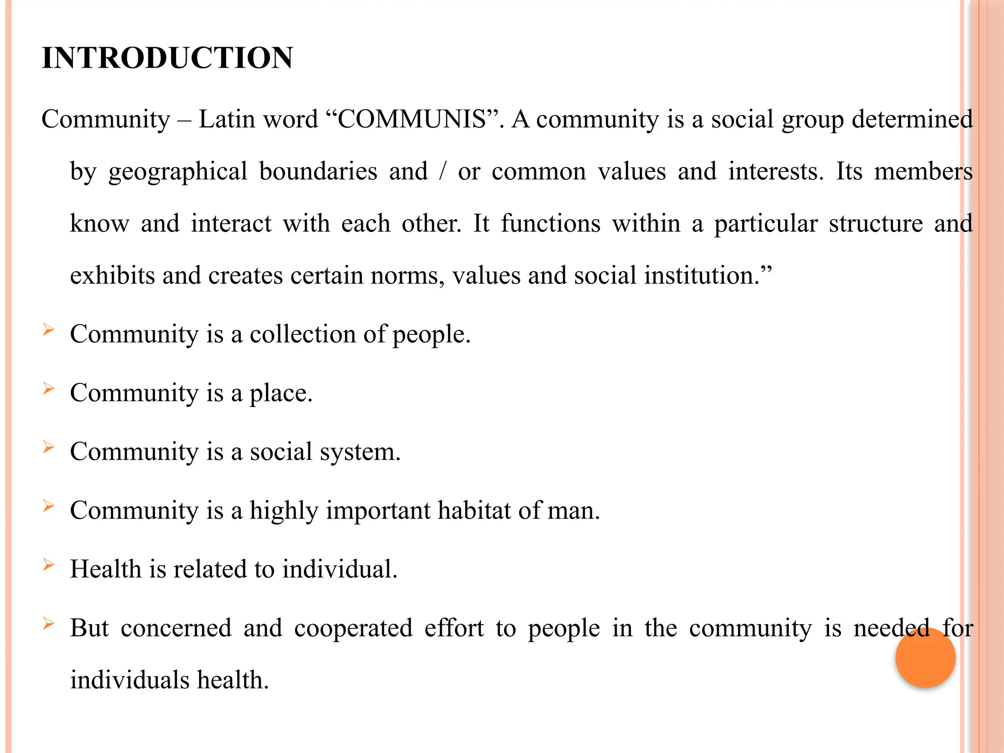 Community – Latinword “COMMUNIS”. A community is a social group determined
