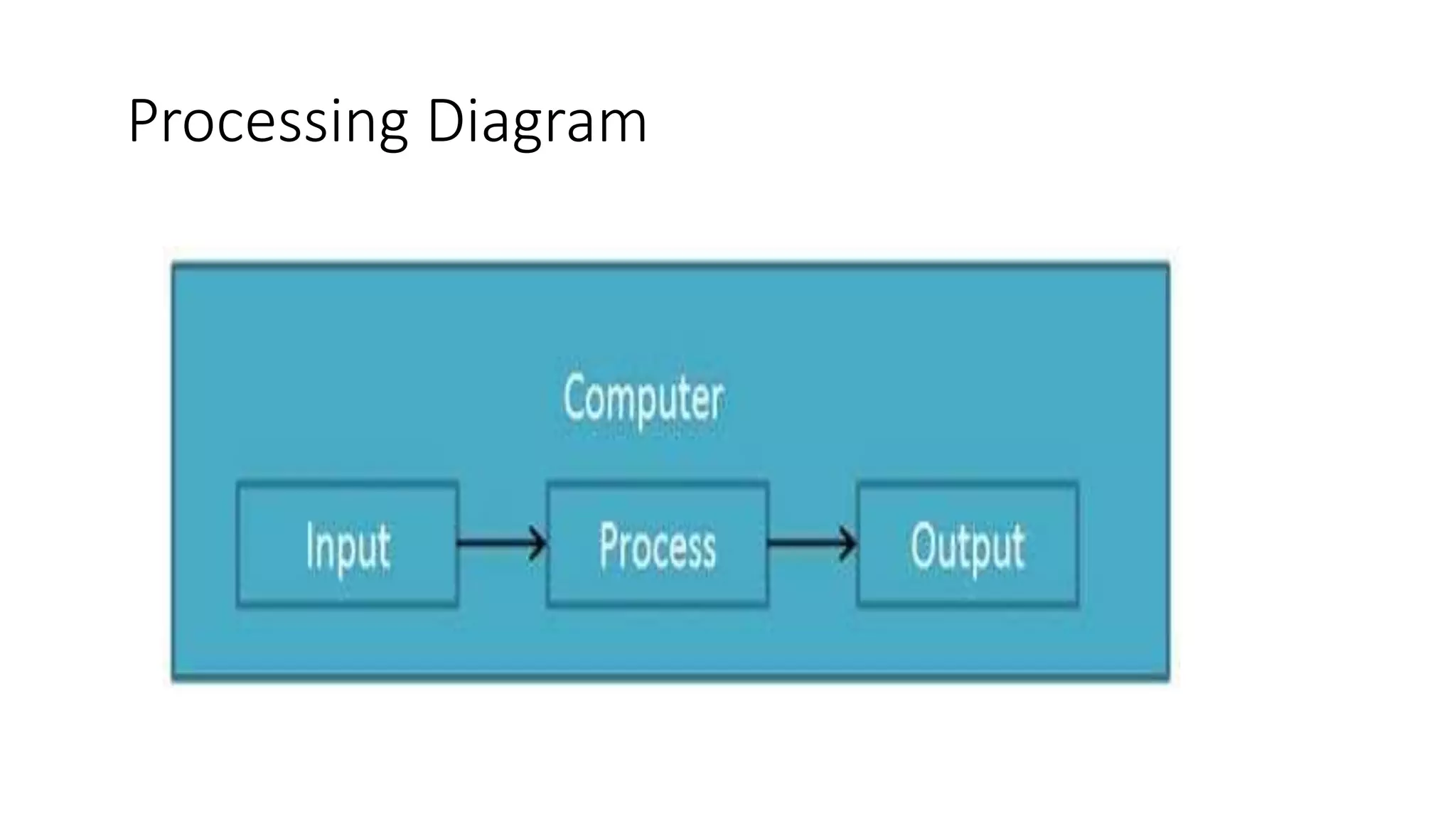 - Computers take in raw data as input, process it under a program's instructions to produce output which is saved for future use.