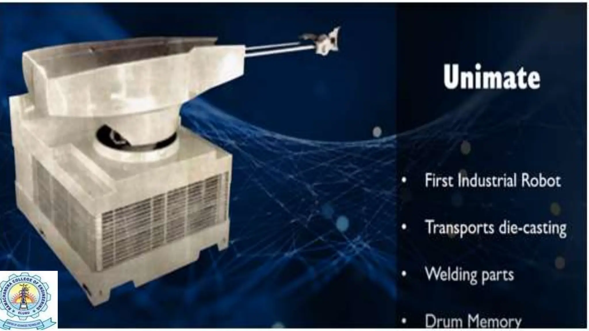 The document provides an overview of industrial robotics, defining robots and their key components, types, and historical developments, including the first industrial robot, Unimate. It discusses automation technologies, laws of robotics, and reasons for automation, as well as classifications of robots and their present and future applications in various industries. The document emphasizes the growing significance of robotics in tasks ranging from manufacturing to hazardous environments, healthcare, and service industries.