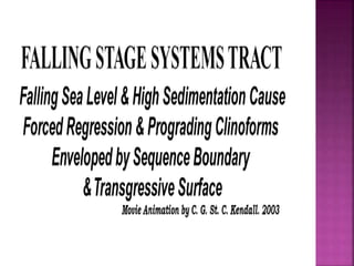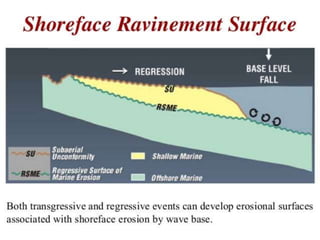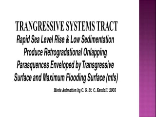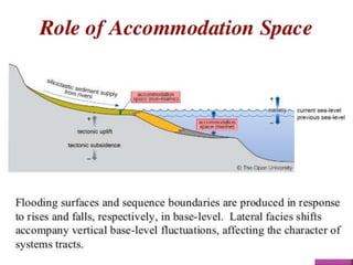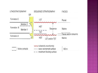 This document defines sequence stratigraphy and discusses its basic concepts. Sequence stratigraphy studies genetically related rock units bounded by unconformities. It is based on dividing strata into sequences bounded by sea level changes. Key concepts discussed include depositional sequences, parasequences, flooding surfaces, system tracts, accommodation space, and the importance of sequence stratigraphy for understanding basin evolution and resource exploration.