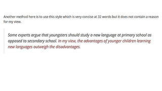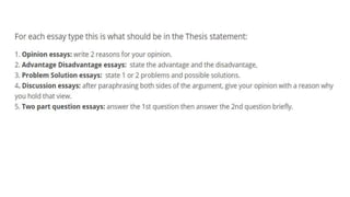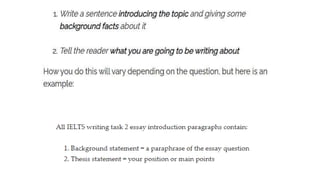 This document provides sample introductory phrases that can be used to start a thesis statement for an IELTS Writing Task 2 essay, including "I believe", "In my opinion", "I think", "From my perspective", "I agree/this essay agrees", "I disagree", and "In my view". It also mentions that the document is an introduction paragraph sample for IELTS Writing Task 2.