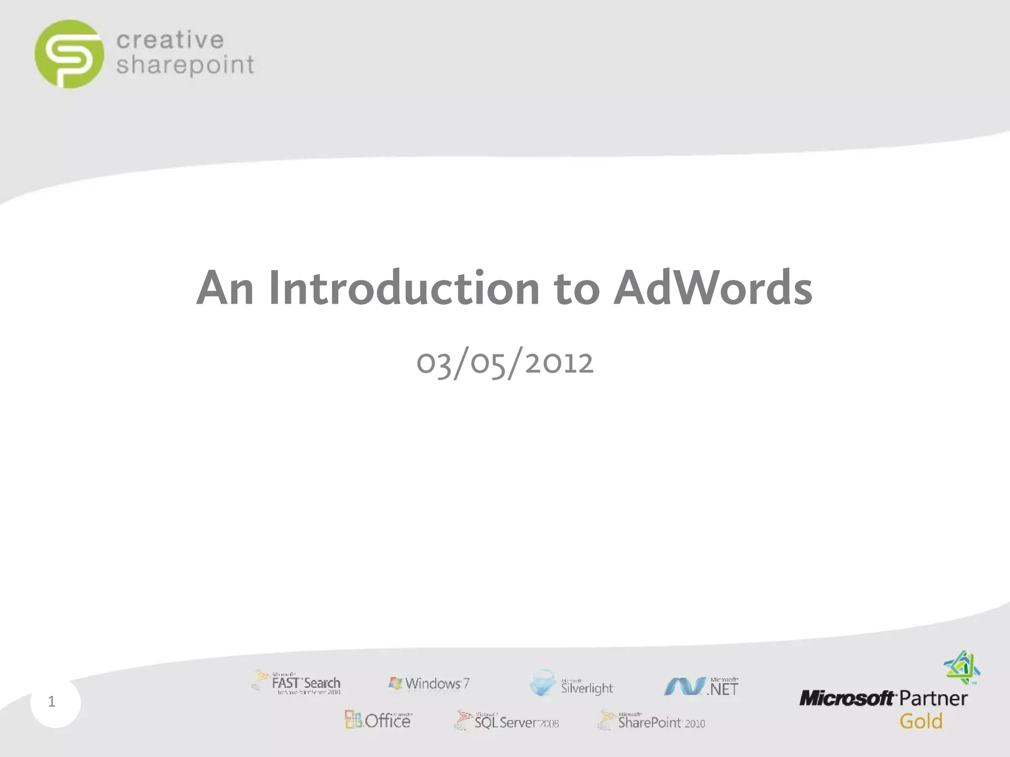 Creative Sharepoint's presentation Introduction to Google AdWords and more.