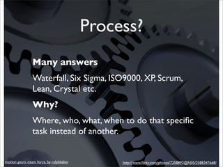 The document introduces Agile development using the Scrum framework, highlighting its focus on team collaboration and iterative progress in software development. It contrasts Scrum with other methodologies like XP and Lean, and emphasizes values from the Agile manifesto such as prioritizing individuals and interactions. The document also outlines key roles, practices, and activities within Scrum, including the importance of communication and regular showcases of completed work.
