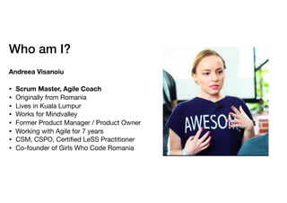 The document discusses agile values and principles, highlighting Andreea Visanoiu's background and her role in promoting agile methodologies, particularly the Cynefin framework, which categorizes leadership challenges into five contexts. It contrasts agile and waterfall approaches to software development, emphasizing the advantages of agility such as continuous customer feedback and flexibility, while also acknowledging the potential pitfalls associated with a lack of understanding of agile practices. Additionally, the document covers the importance of continuous improvement and team empowerment within agile frameworks, showcasing methodologies such as kanban and iterative development.