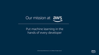 This document provides an overview of Amazon Web Services' machine learning capabilities, including: