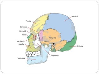 This document provides an introduction to human anatomy. It begins by defining anatomy and its subcategories, including macroscopic and microscopic scales. It then discusses directional terms used in anatomy. The document outlines the skeletal system and bones in detail, including their functions, types of tissue, and locations in the upper limb, lower limb, spine, and elsewhere. It provides an overview of bone structure and concludes with learning objectives about various body systems, organs, senses, and pathological conditions.
