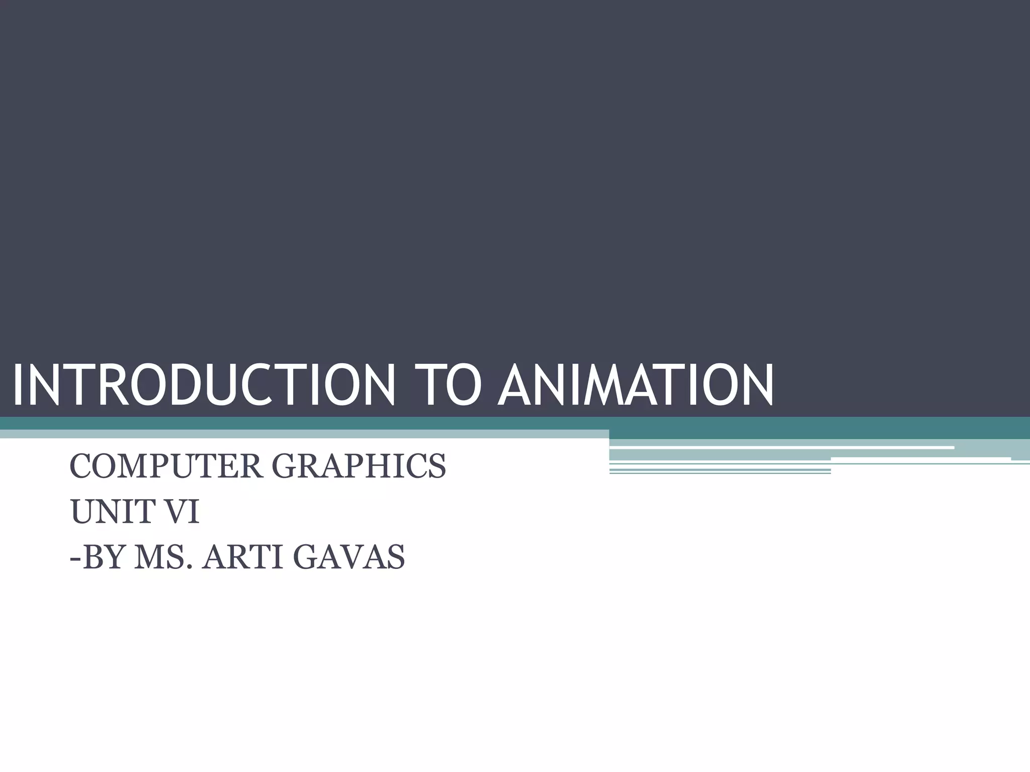 Computer animation involves key-frame animation where animators create important frames (key frames) that define how an object changes over time, such as its size, direction or shape. The computer then generates the in-between frames to create a smooth animation. Morphing is a technique that seamlessly transitions one image into another through a sequence of interpolated images. Three-dimensional morphing directly morphs 3D models to overcome limitations of 2D morphing like incorrect handling of lighting and visibility changes during a morph.