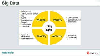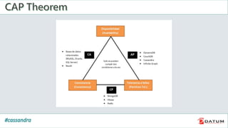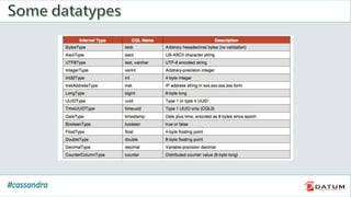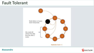 Apache Cassandra is an open source, distributed, decentralized, scalable, highly available, fault-tolerant, and tunably consistent database. It is based on Amazon's Dynamo and Google's Bigtable models. Cassandra provides linear scalability, high availability with no single points of failure, and tunable consistency. It uses a distributed data model across a cluster with configurable replication for fault tolerance.