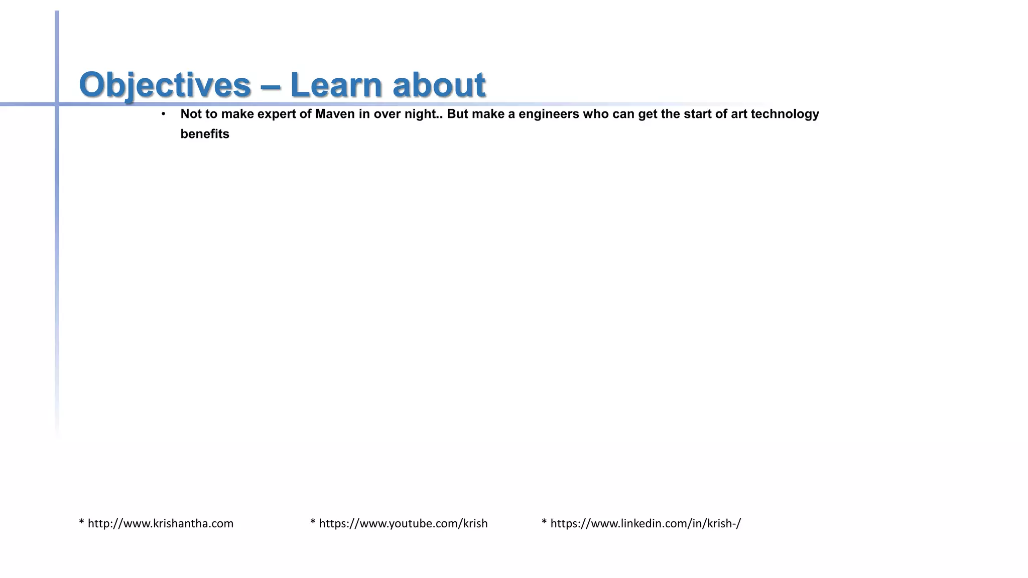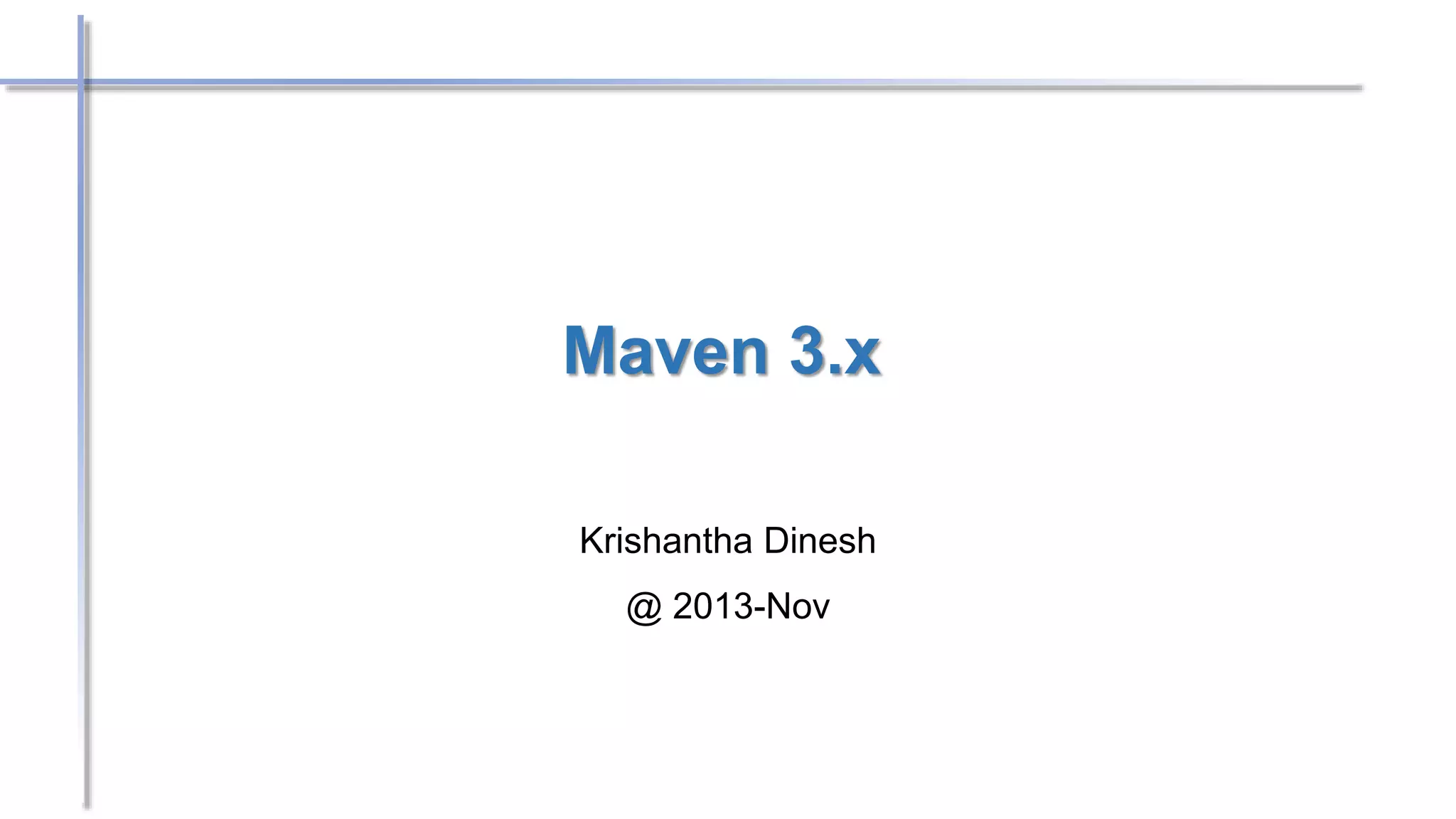 The document provides an introduction to Maven, a build tool that simplifies project management by handling dependencies, versioning, and integration with IDEs. It discusses installation steps, project structure, POM file configuration, commands for building projects, and the concept of transitive dependencies. Additional topics include scoped dependencies, repository types, and plugins to enhance automation and Java documentation generation.