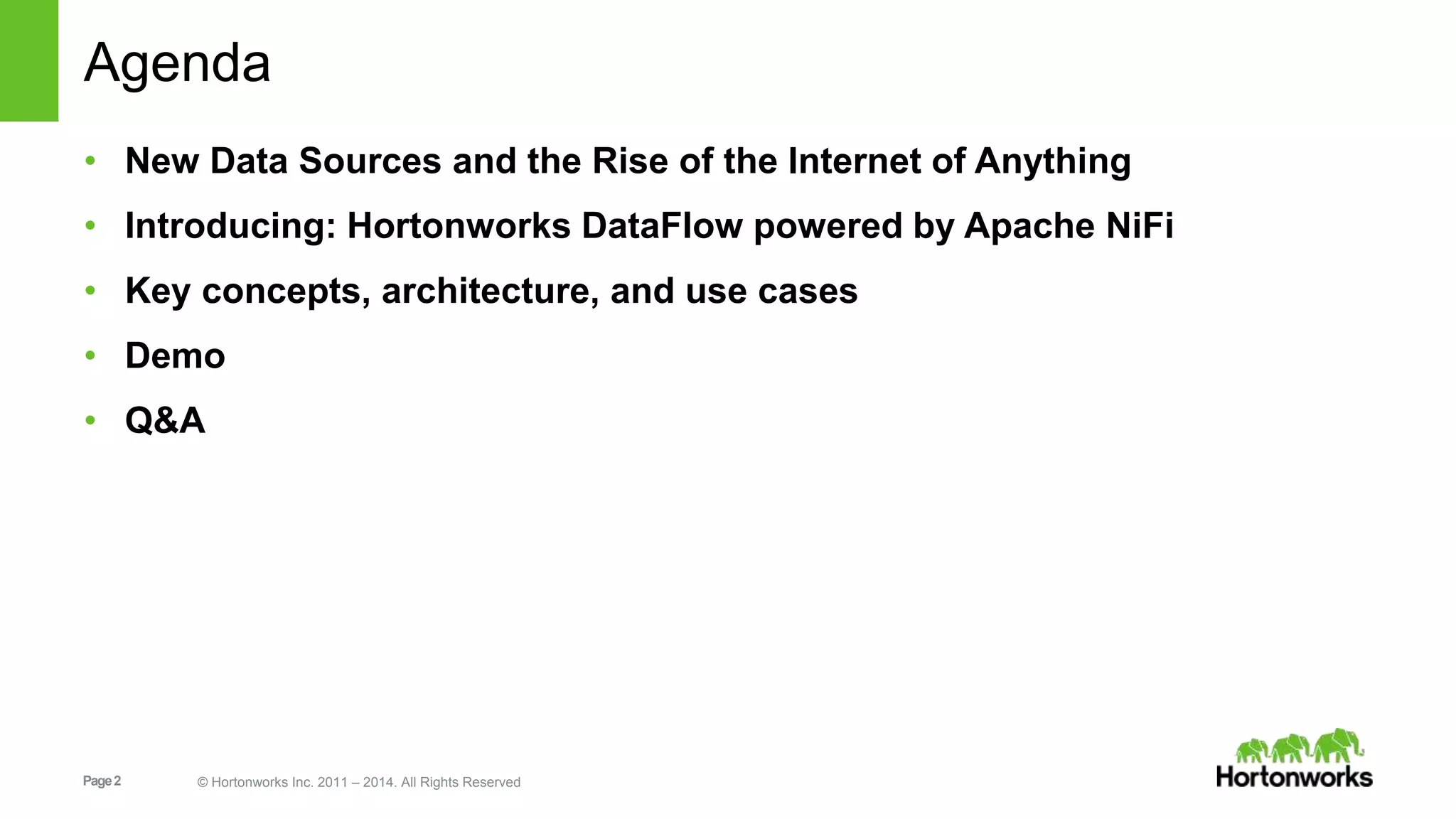 The document introduces Apache NiFi, an open source tool for data flow. It discusses how data from the Internet of Things is growing faster than can be consumed and highlights Apache NiFi's ability to securely collect, process and distribute this data in motion. The key concepts of Apache NiFi are described as managing the flow of information, ensuring data provenance, and securing the control and data planes. Example use cases are provided and the document demonstrates Apache NiFi's visual interface for creating data flows between processors to ingest, transform and output data in real-time.