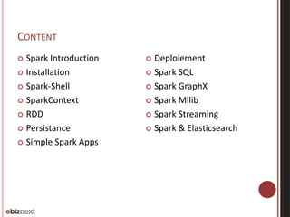 The document is an introduction to Apache Spark, covering its installation, core components like SparkContext, Resilient Distributed Datasets (RDDs), and different applications such as Spark SQL, GraphX, and MLlib. It highlights Spark's speed and flexibility for handling batch, interactive, and real-time data with a high-level abstraction for easier development. Additionally, it discusses Spark's persistent caching capabilities, cluster manager types, and provides examples of simple Spark applications.