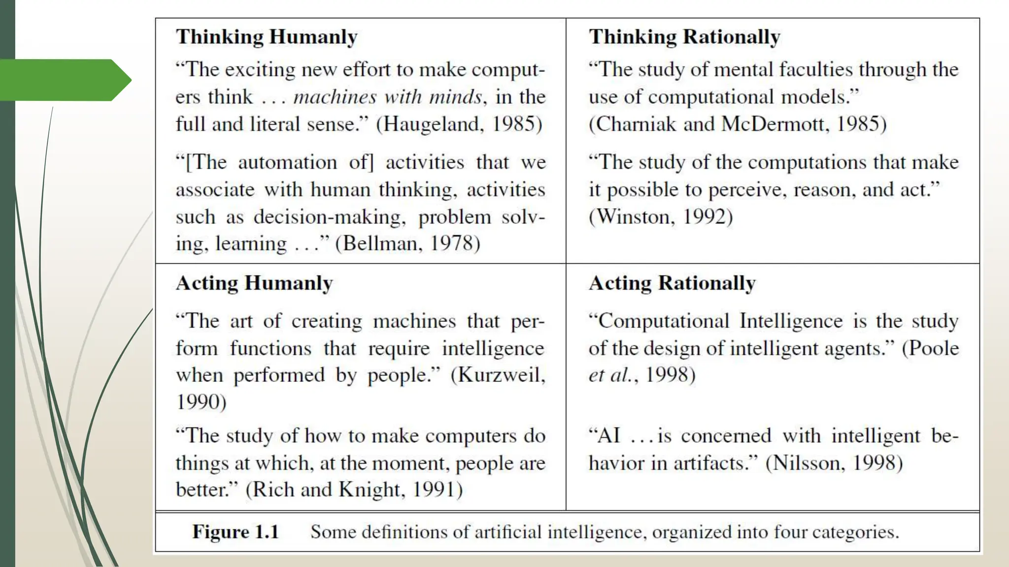 The document explores the foundations, history, and goals of artificial intelligence (AI) and machine learning (ML), detailing various components and categorizations of AI, including reasoning, learning, and acting. It discusses the evolution of AI, from early experiments in the 1940s and 1950s to current applications such as robotics and speech recognition, emphasizing the importance of rational agents and environment interactions. Moreover, it outlines different types of agent programs and their functions within the AI system, encapsulating concepts essential for creating intelligent systems.