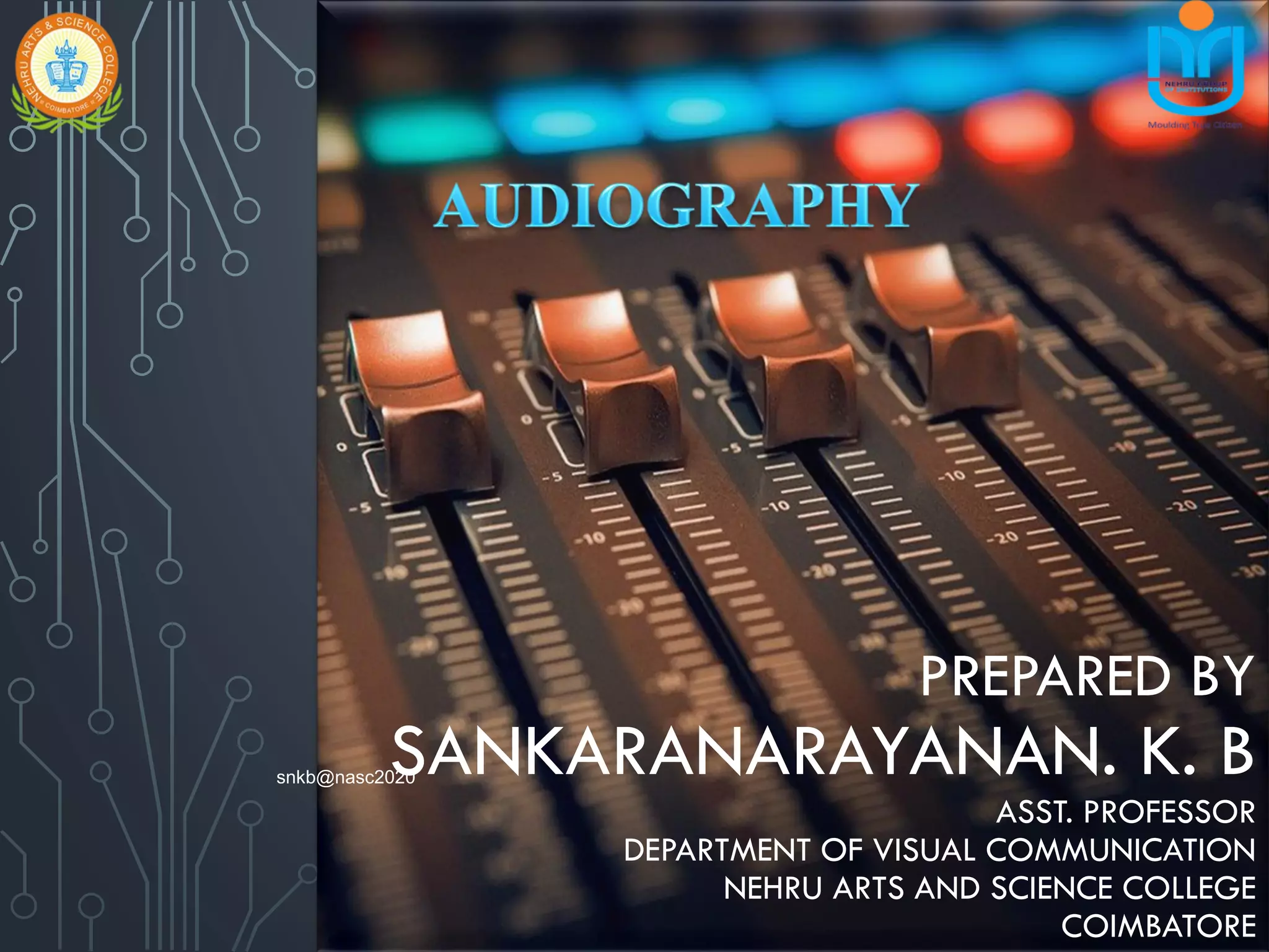 The document outlines a course on audiography, covering topics such as the nature of sound, its propagation, characteristics, and perception. It explains sound's behavior in different mediums, the structure of the human ear, and applications of sound technology like ultrasound and sonar. Psychoacoustics, the study of sound perception, is highlighted as a significant aspect of audiology.