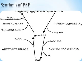 Local hormones, also known as autacoids, are physiologically active substances produced locally in the body that have short-lived, localized effects. Some key classes of local hormones include amine derivatives like histamine and serotonin, peptide derivatives like bradykinin and angiotensins, and lipid derivatives like prostaglandins, leukotrienes, and platelet activating factor. These endogenous compounds play important roles in physiological and pathological processes through their actions on local tissues.