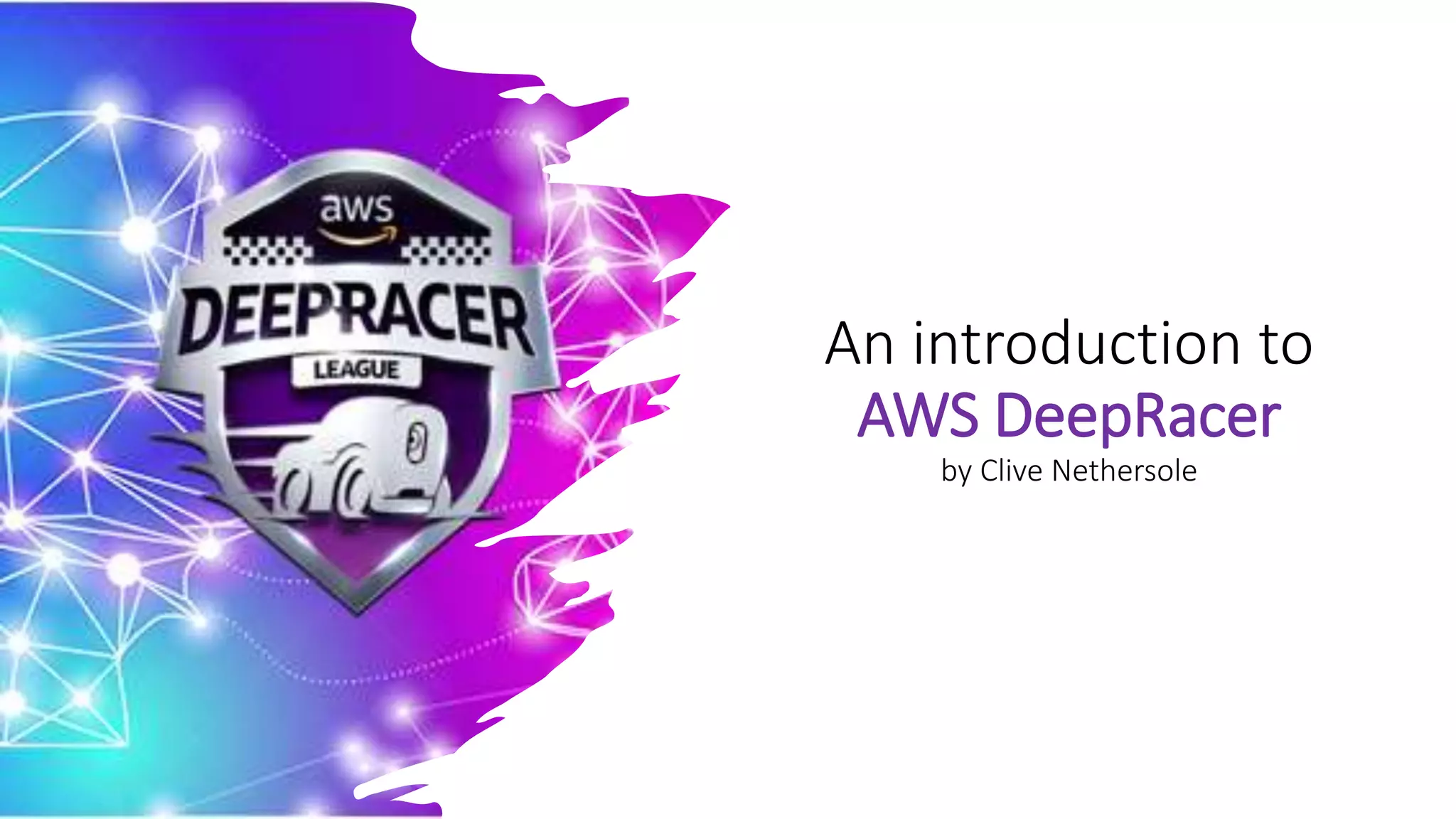 This document provides an introduction to AWS DeepRacer. It discusses that machine learning involves using algorithms to parse data and learn to make predictions. To use AWS DeepRacer, one needs an AWS account and about $30 per month. It also covers that AWS DeepRacer uses reinforcement learning for autonomous racing and has both physical and virtual simulators with leagues. Instructions are provided on how to get started, including joining the Slack channel or using the AWS console, custom instances, or physical servers.
