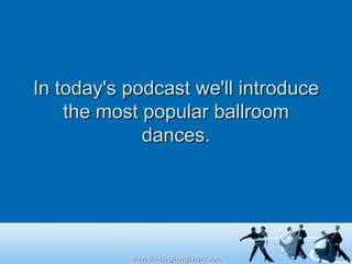 The first episode of the 'Dancing for Beginners' podcast introduces popular ballroom dances including waltz, cha cha, salsa, foxtrot, tango, jive, samba, rumba, and swing, highlighting their unique characteristics and appeal. The podcast aims to make learning to dance enjoyable and accessible for beginners, emphasizing the fun, exercise, and social aspects of dancing. Listeners can expect to gain insights into each dance style, making it easier for them to choose which dance to learn first.