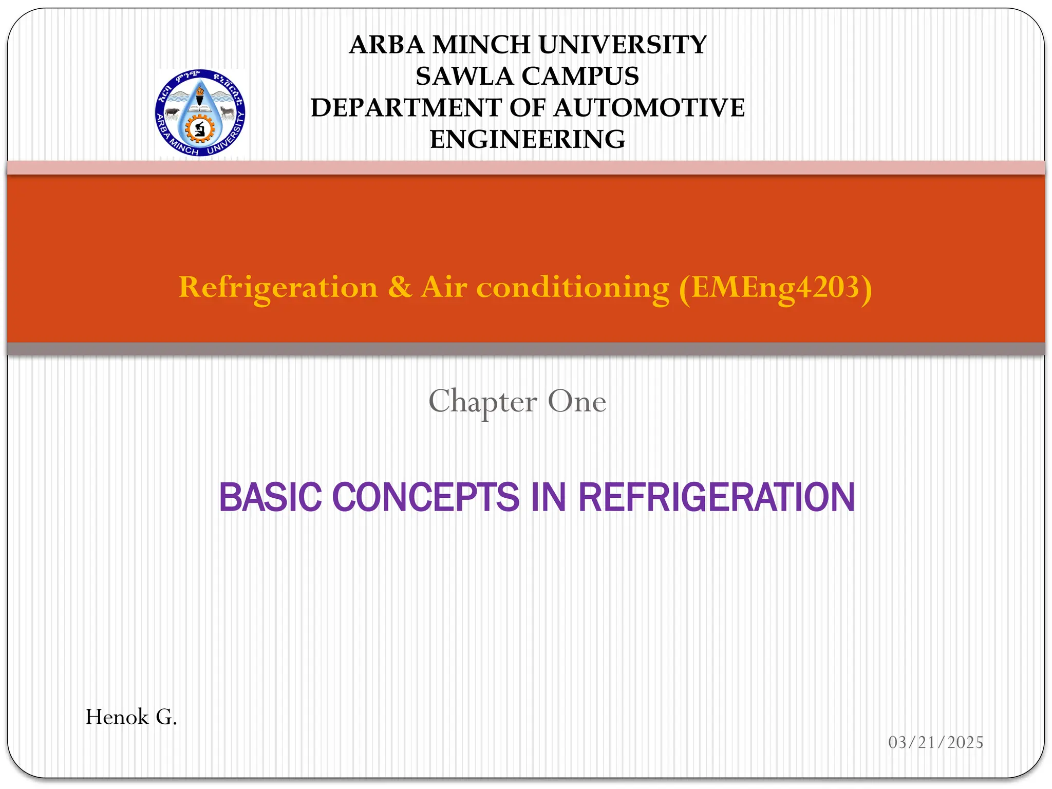 This presentation describes the basic concepts of refrigeration, difference between heat pump and refrigeration, the methods and units of refrigeration and its applications.