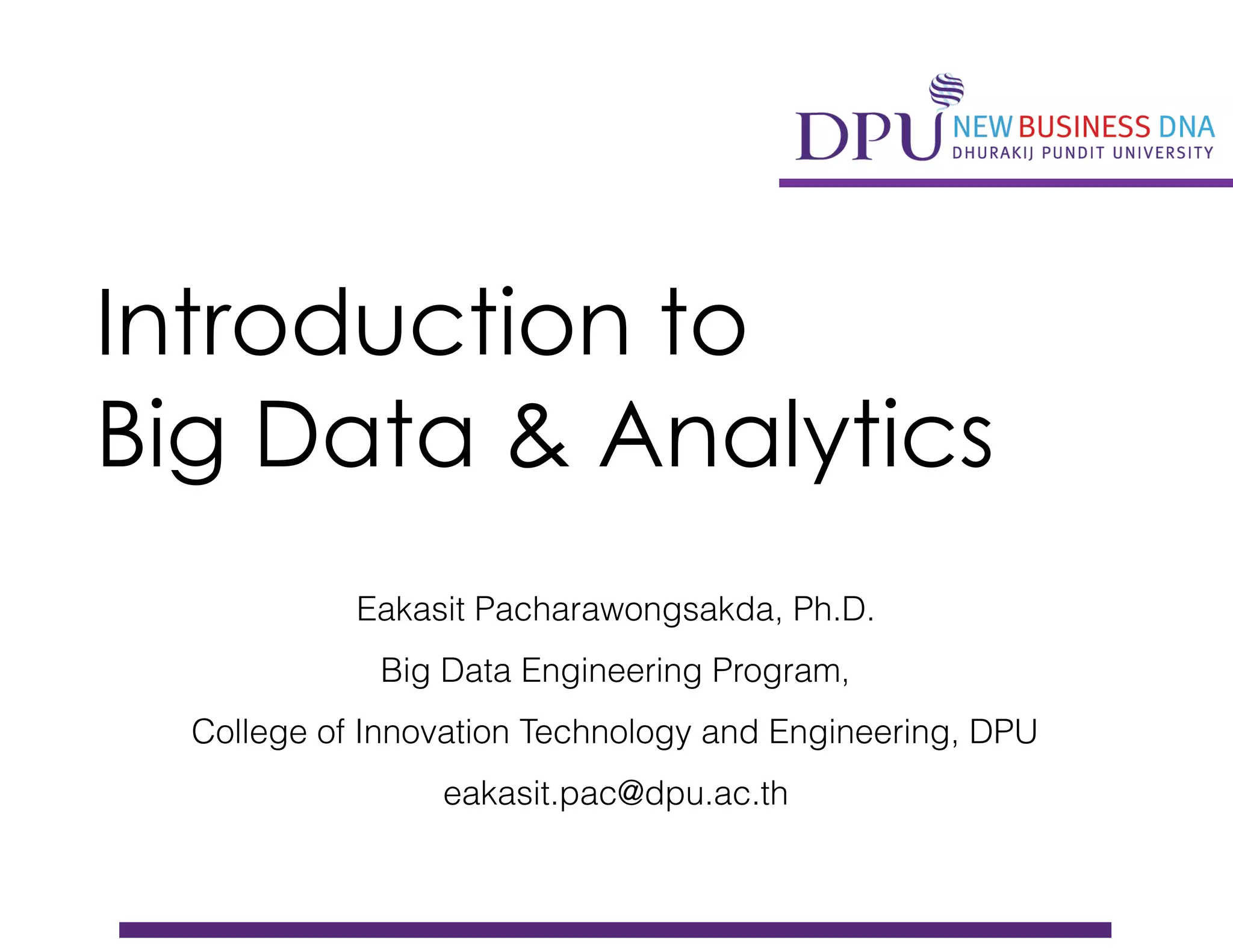Introduction to big data and analytic Eakasit Patcharawongsakda ในงาน THE FIRST NIDA BUSINESS ANALYTICS AND DATA SCIENCES CONTEST/CONFERENCE จัดโดย คณะสถิติประยุกต์และ DATA SCIENCES THAILAND