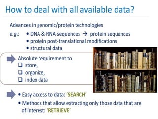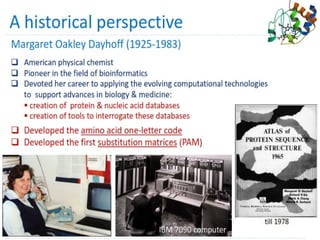 The document outlines a course on bioinformatics, detailing its purpose, learning outcomes, key topics, teaching methodology, assessment methods, and recommended readings. It emphasizes the importance of computational tools in analyzing biological data and their applications in various fields such as medicine, biotechnology, and agriculture. Additionally, it discusses the limitations of bioinformatics and the necessity of experimental validation to complement computational predictions.