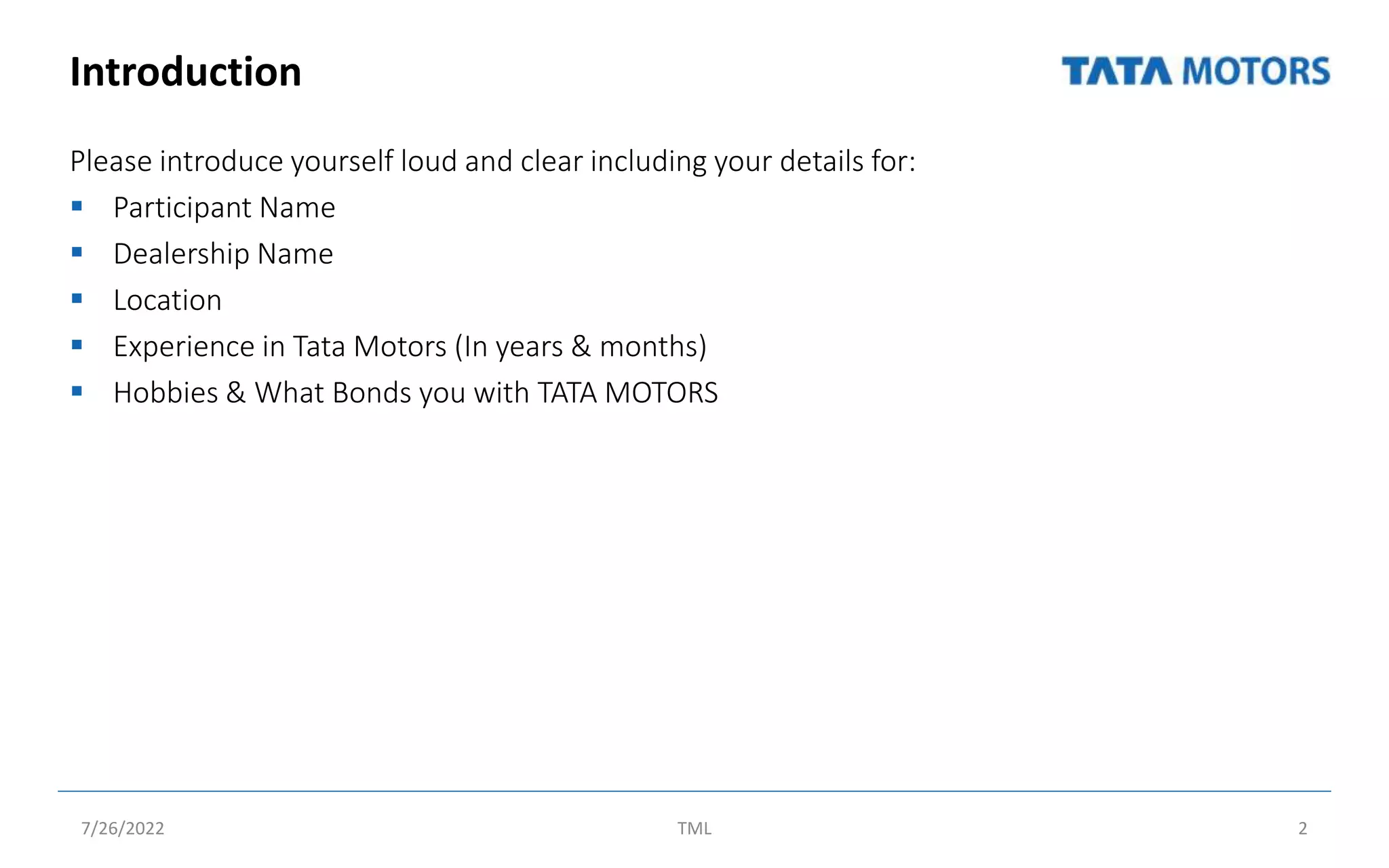 The document provides an introduction to Tata Motors buses and engine systems. It discusses the objectives of the training program which are to understand Tata bus models, CNG fuel systems, and maintenance of CNG engines. The agenda covers an introduction to rear-engine and front-engine buses, an overview of compressed natural gas (CNG) and gas engine terminology, and details on the Cummins 6B5.9G and 3.8/5.7 SGI CNG engine systems including specifications and maintenance.