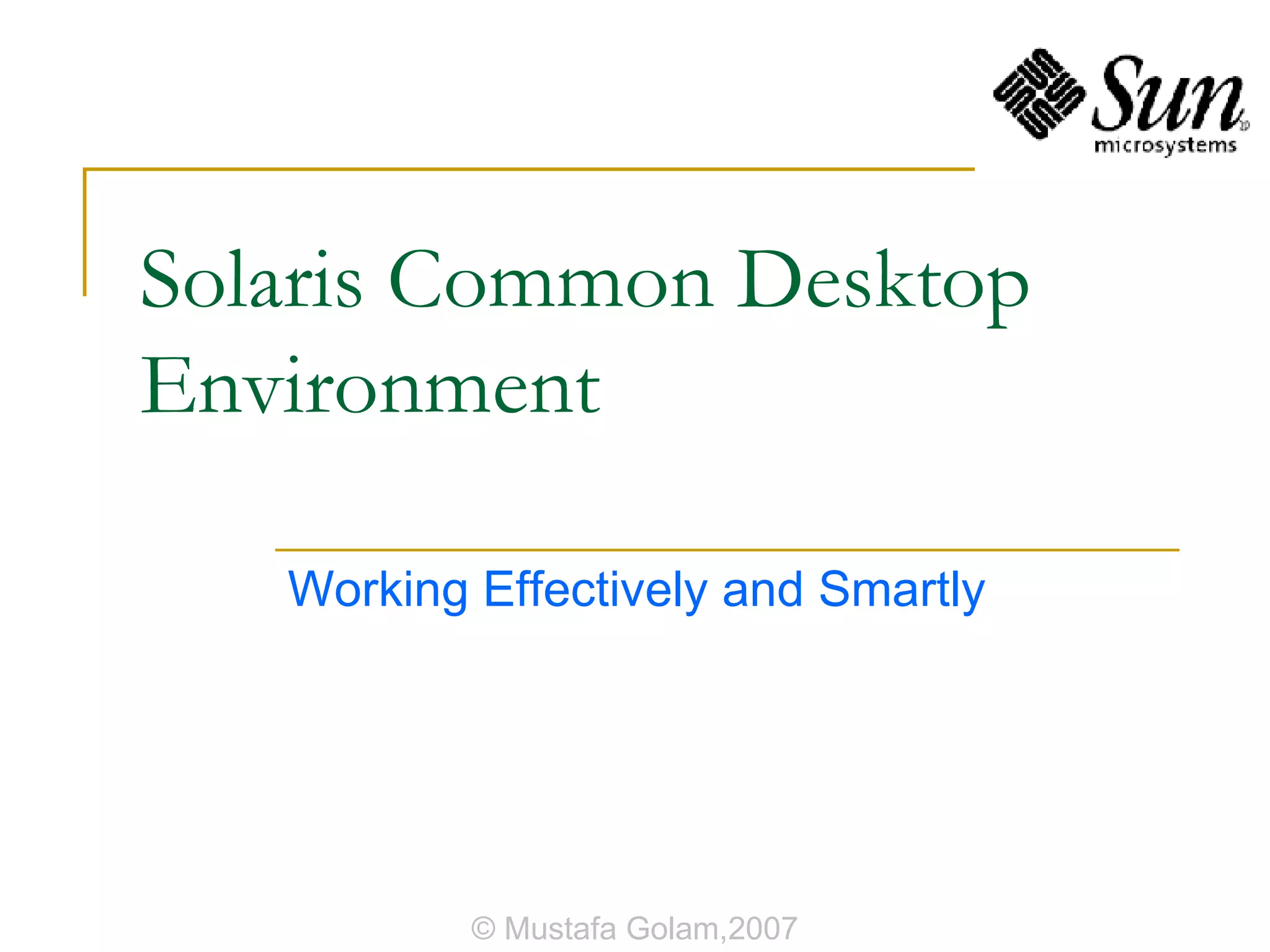 The document provides instructions on how to use the Common Desktop Environment (CDE) on Solaris. It describes how to perform common tasks like running applications, using windows and menus, customizing workspaces, and getting help. The document also explains how desktop sessions work, including how to start and end a session, lock the display, or start a command-line session instead of the regular desktop environment.