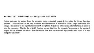 The document provides an introduction to programming focused on data input and output. It includes information about the 'scanf' function as well as 'gets' and 'puts' functions. The document is associated with instructors Dr. Jasabanta Patro and Dr. Rini Smita Thakur.