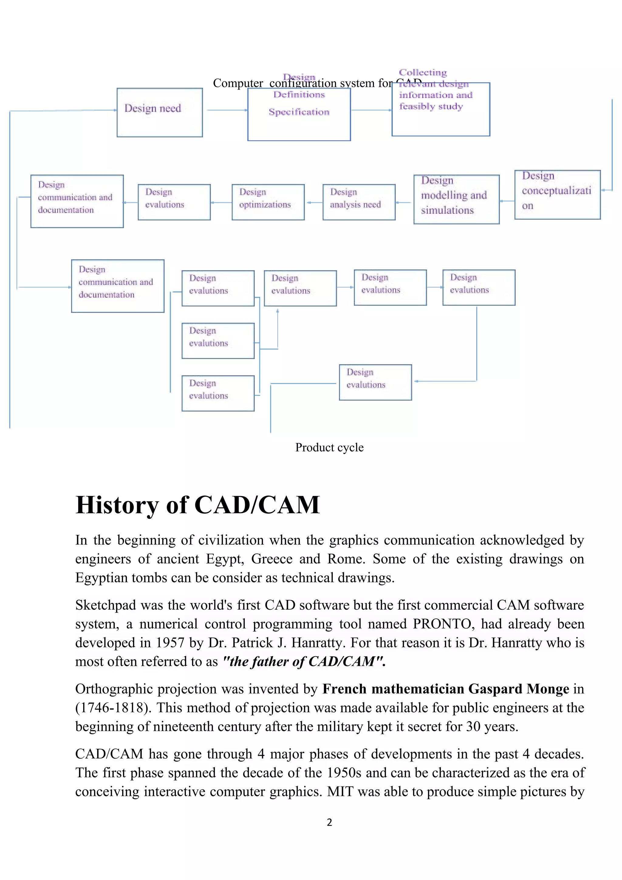 Computer-aided design (CAD) involves using computer systems to assist in the creation, modification, analysis, or optimization of a design. Computer-aided manufacturing (CAM) provides computer support for manufacturing a given product. CAD/CAM integrates design and manufacturing, which were traditionally separate functions, and will ultimately provide the technology base for computer-integrated factories of the future. CAD/CAM software is used to both design and manufacture products through processes like computer numerical control (CNC) machining. Geometric modeling, a key part of CAD/CAM, mathematically describes shapes using methods like wireframe, surface, and solid modeling.