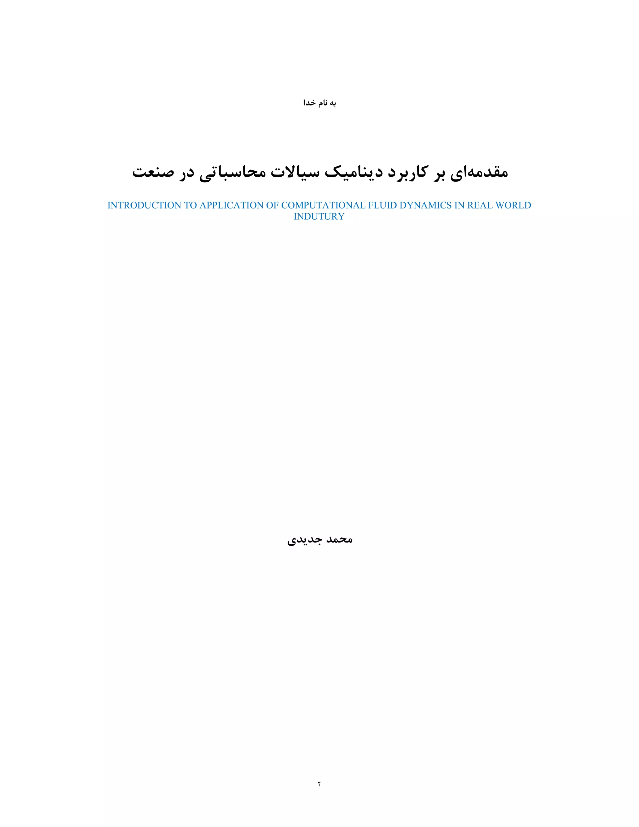 در ﻣﺤﺎﺳﺒﺎﺗﯽ ﺳﯿﺎﻻت دﯾﻨﺎﻣﯿﮏ ﮐﺎرﺑﺮد ﺑﺮ اي INTRODUCTION TO APPLICATION OF COMPUTATIONAL FLUID DYNAMICS IN REAL WORLD INDUTURY ﺟﺪﯾﺪي ﻣﺤﻤﺪ