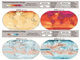 The document summarizes key findings from the IPCC AR5 Synthesis Report. It finds that human activity, including emissions from energy production, agriculture and other sources, is extremely likely the dominant cause of global warming since the mid-20th century. Continued emissions of greenhouse gases will lead to further warming and changes in the climate system such as sea level rise and loss of Arctic sea ice. Limiting global temperature increase to 2°C will require substantial reductions in emissions by 2050 through policy measures and technological changes. Delaying mitigation actions will make limiting warming to 2°C significantly more difficult.