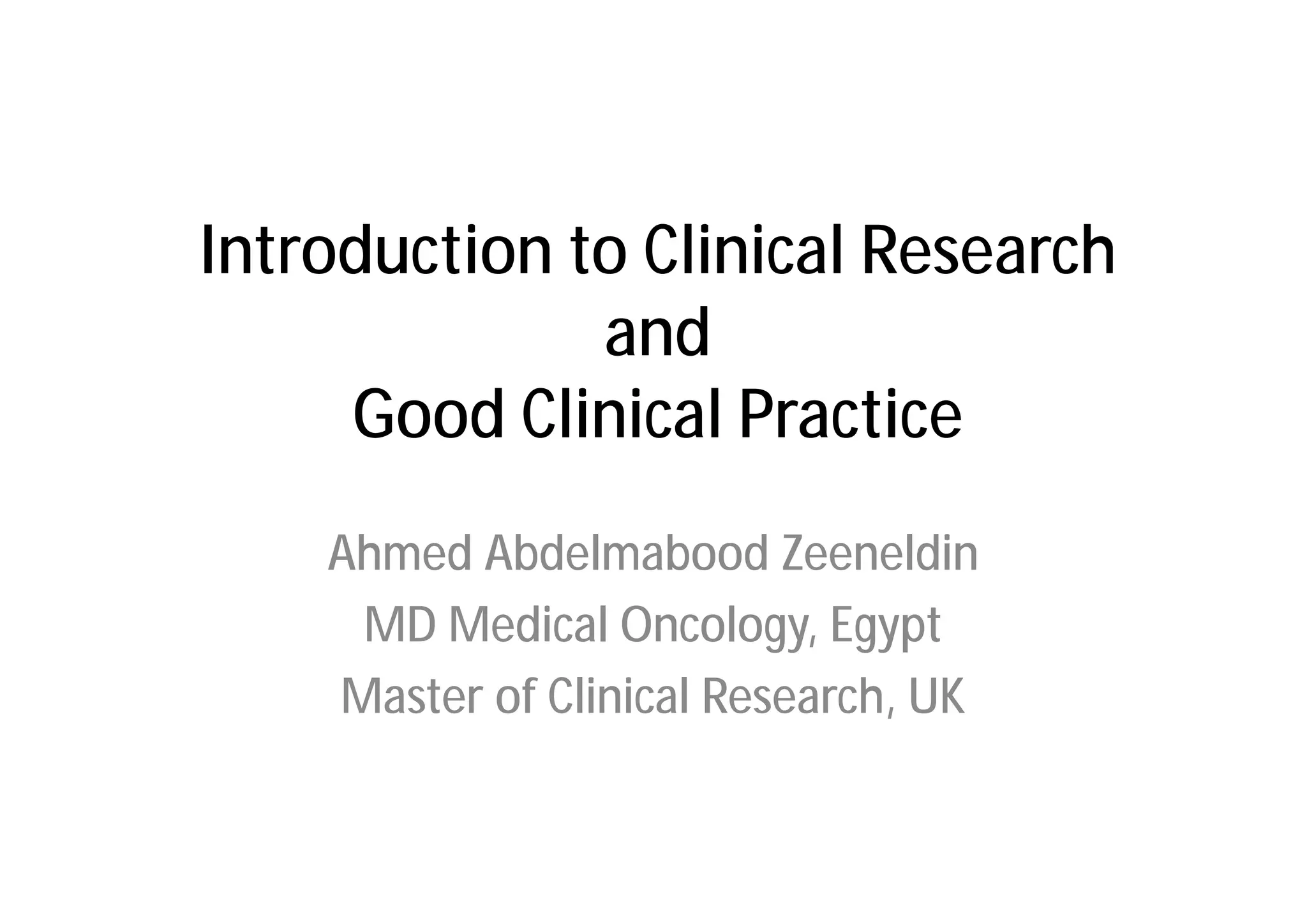 This document provides an introduction to clinical research and good clinical practice (GCP). It discusses the types of scientific and clinical research, including observational and experimental study designs. The document outlines the phases of clinical trials from I to IV. It emphasizes the importance of ethics in research and describes GCP as international ethical and quality standards for clinical research. GCP aims to protect research participants and ensure valid, reliable results. The document lists the parties involved in clinical research, including investigators, sponsors, and ethics committees, and their roles and responsibilities.