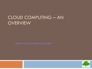 The document provides an overview of cloud computing, including definitions of related terms like infrastructure as a service (IaaS), platform as a service (PaaS), and software as a service (SaaS). It discusses the history and evolution of cloud computing from concepts like grid computing and utility computing. Key characteristics of cloud computing include agility, scalability, reliability, and multi-tenancy. The document also outlines public, private and hybrid cloud models and how cloud computing relates to concepts like service-oriented architecture.