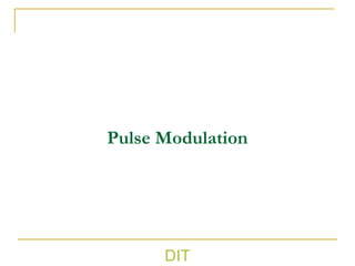 The document discusses various types of pulse modulation techniques including pulse amplitude modulation (PAM), pulse width modulation (PWM), pulse position modulation (PPM), and pulse code modulation (PCM). It provides details on the basic principles, components, and advantages of each technique. PCM is described as the digital form of pulse modulation where the analog signal is converted to digital pulses by sampling, quantizing, and encoding the signal. The minimum sampling rate required by the Nyquist theorem and examples of calculating bit rates for PCM are also covered.