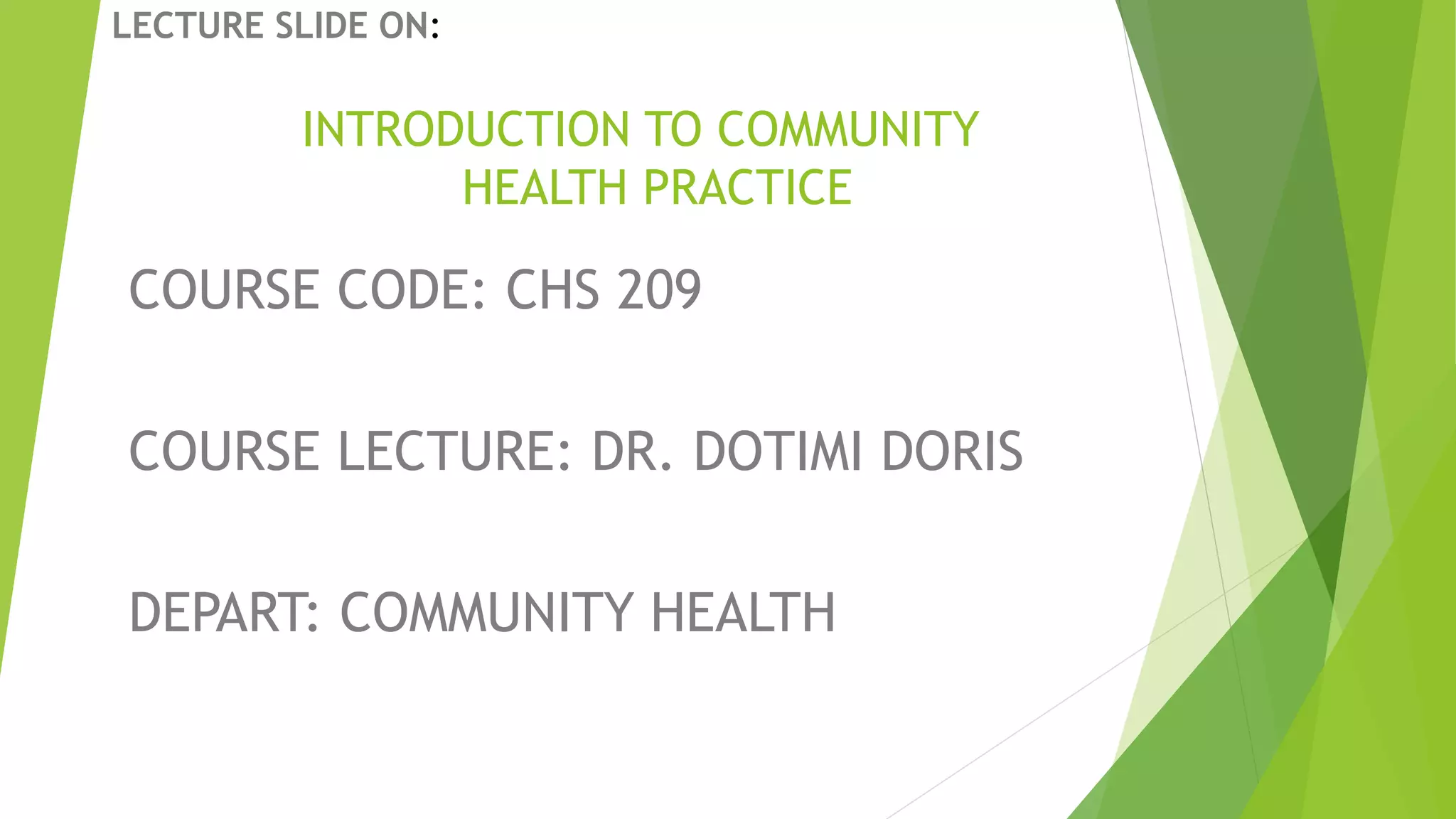 This document provides an outline and overview of a lecture on community health practice in Nigeria. It discusses key topics like the definition of community health practice, the strategies and tools used, types of health services provided at the community level, and the history and importance of community health practice in Nigeria. The goal of community health is to provide primary healthcare services that are accessible, affordable and acceptable to local communities. Community health workers play an important role in promoting health, preventing diseases, and treating minor ailments at the grassroots level.