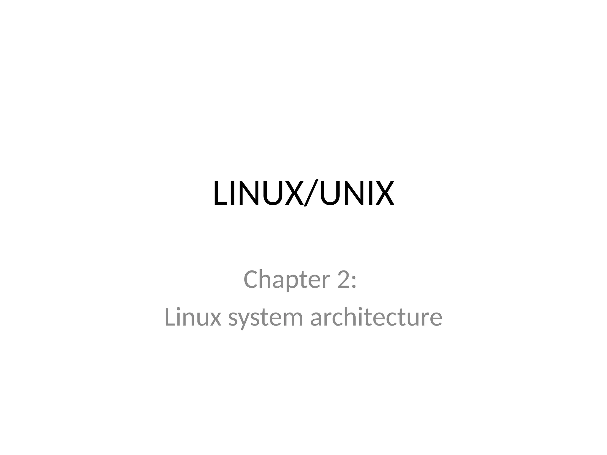 The document discusses Linux system architecture with a focus on hardware configuration, including components such as the BIOS, hardware abstraction layer (HAL), D-Bus, Udev, Sysfs, and boot processes. It outlines how these elements manage hardware communication, device management, and the stages of booting Linux, along with an explanation of different runlevels and shutdown procedures. Key tools and commands related to hardware management, such as lsmod, lspci, and shutdown, are also covered.